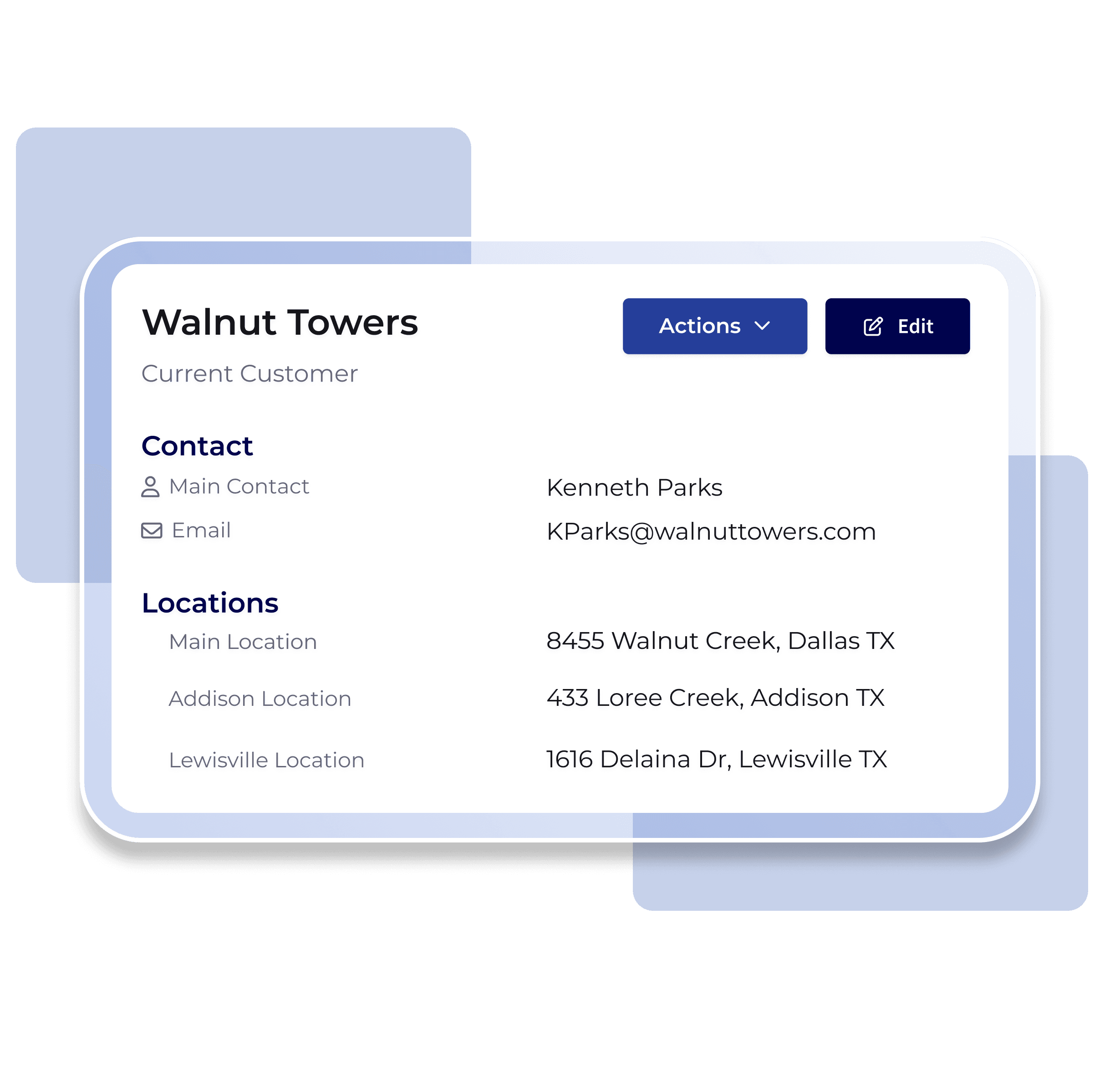 Easily track and manage businesses with multiple service locations under a single customer record.