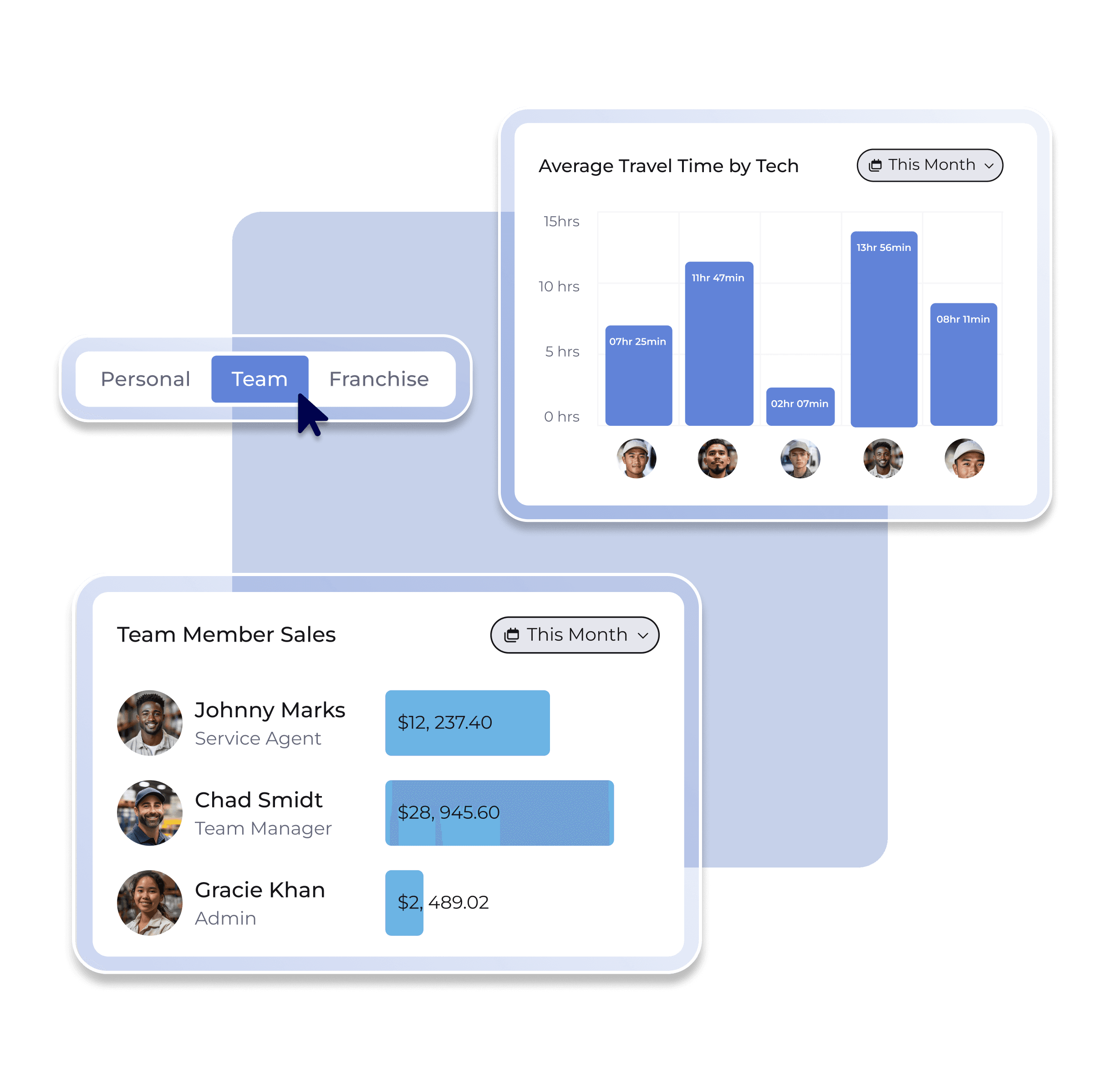 Monitor Team Performance: See up-to-date performance metrics by technician. Track completed jobs, sales, and area coverage no matter where work happens.