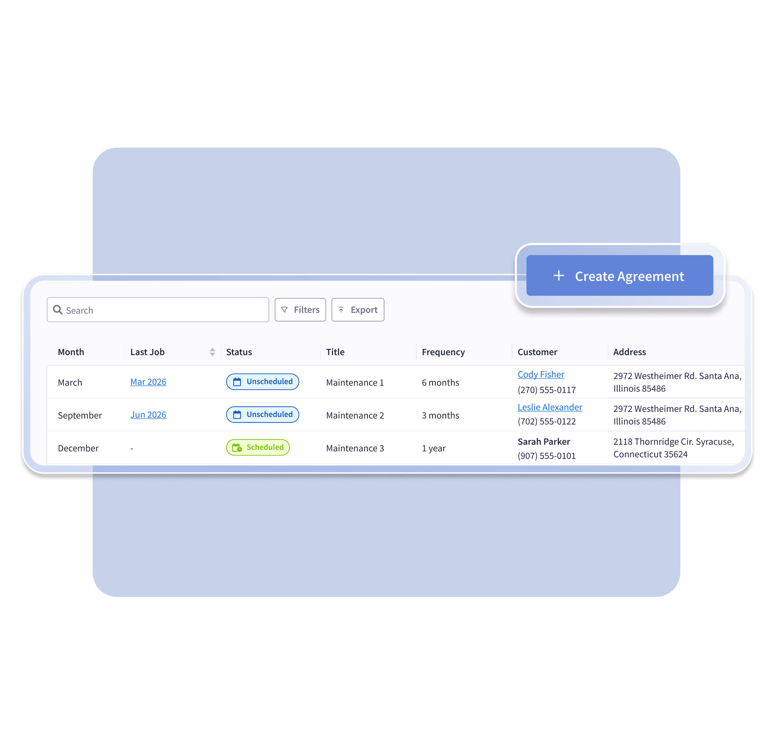 By offering and managing recurring maintenance contracts, you can secure long-term business and boost your revenue.