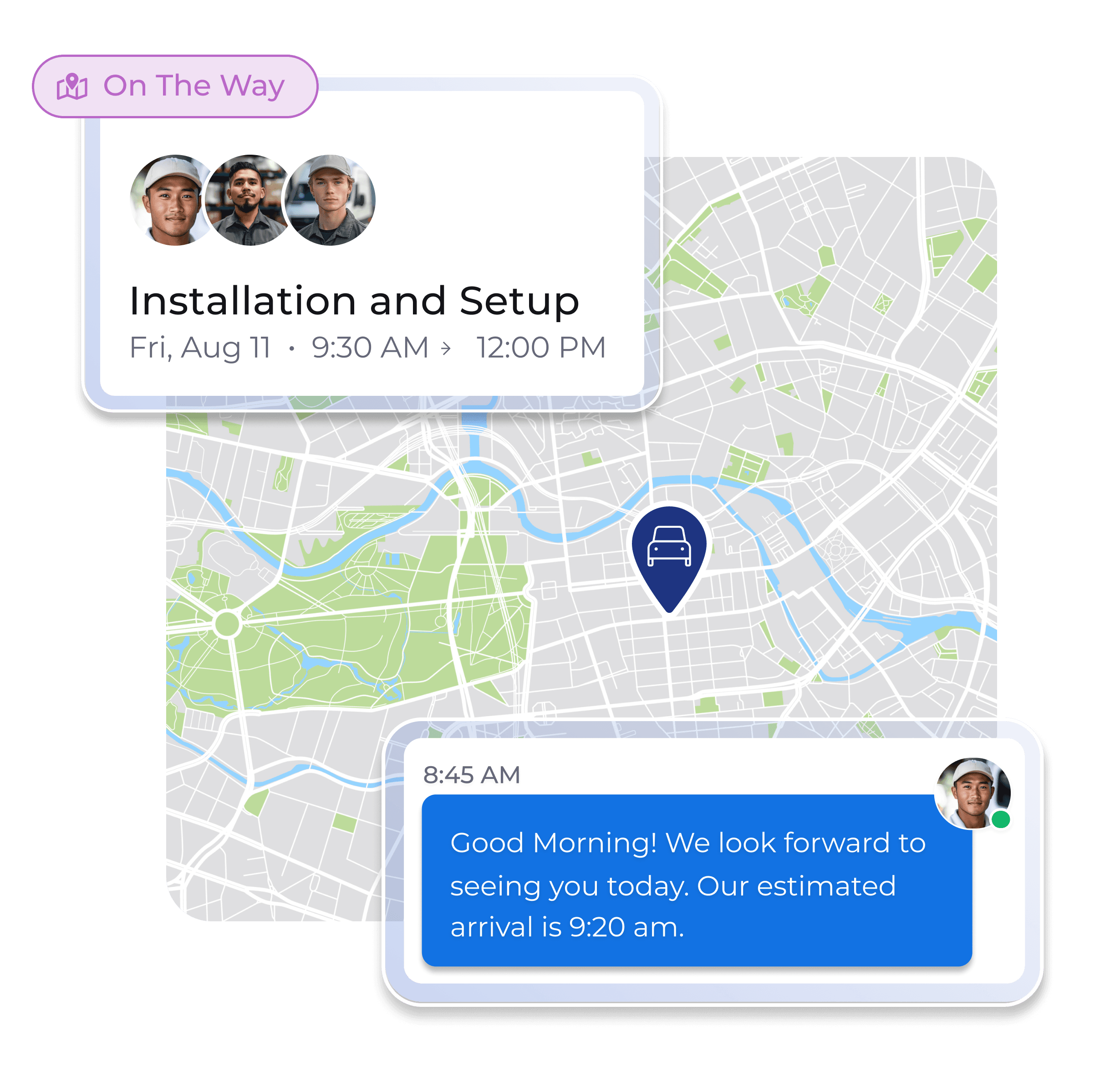 Let customers know your arrival time automatically